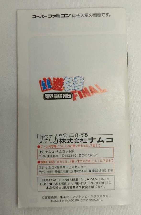 SFCソフト 幽☆遊☆白書 魔界最強列伝FINAL NAMCOT スーパーファミコンソフト NAMCOT幽☆遊☆白書 魔界最強列伝FINALSFCソフト