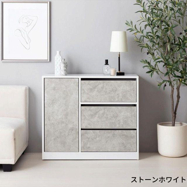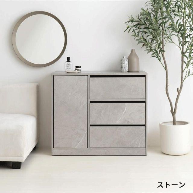 Sharon キャスター付き コンパクト キャビネット 5カラー 棚 チェスト 引き出し 扉収納 薄型 収納 スリム ストーン調 オフィス キッチン リビング クローゼット ハイタイプ おしゃれ