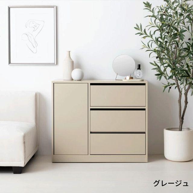 コンパクトサイズながらも収納力抜群な『Sharon(シャロン)』キャスター付きキャビネット。可動棚付きの扉収納とたっぷり入る3杯の引き出しは、雑多な生活感を隠し、お部屋をすっきりと演出。足元には正面から見えない隠しキャスター付きなので使う場所を選ばず、ワンルームやリビングにも置きやすくなっています。