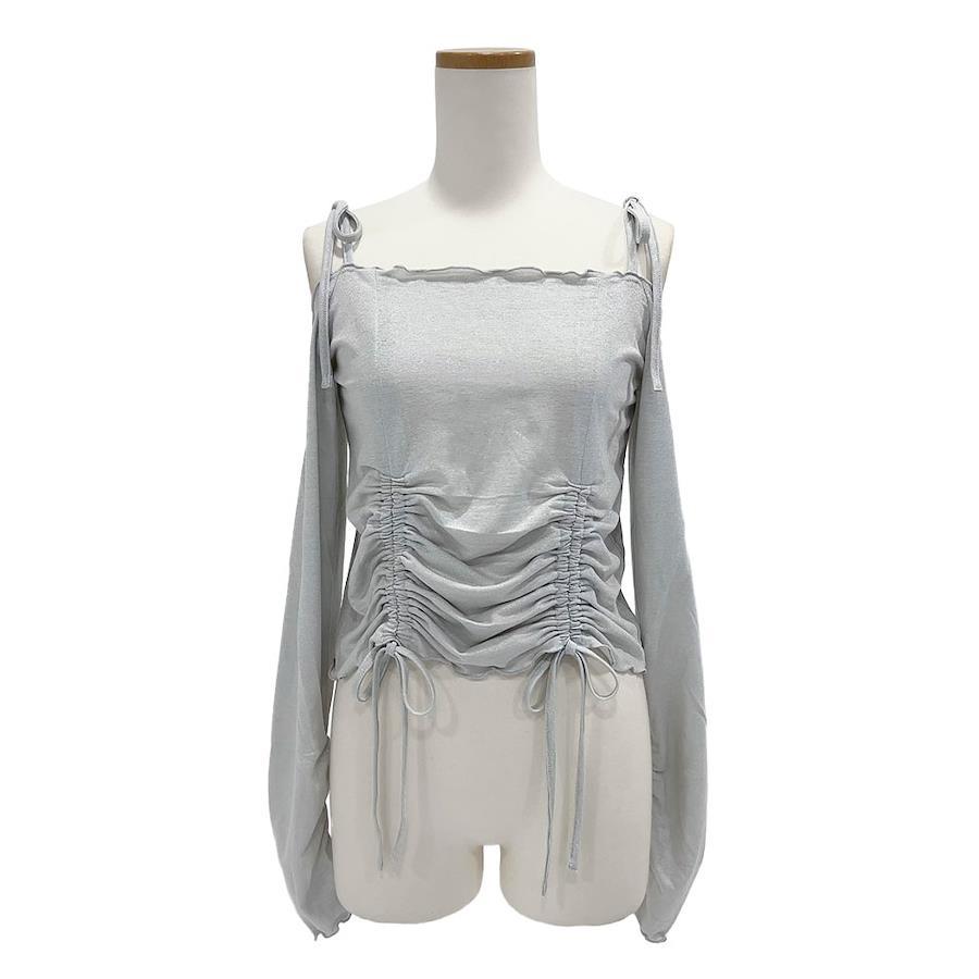 ドロストリボンや肩のリボンなど、リボンがたっぷりあしらわれた可愛いデザインのトップス。