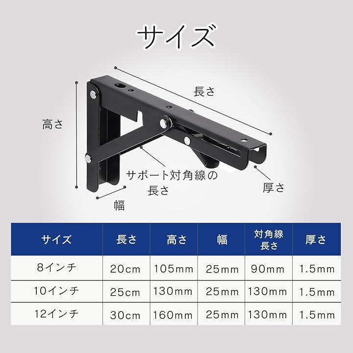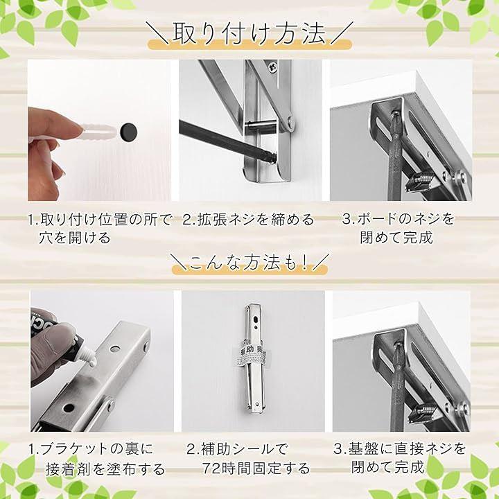 スペースセーバー 取り付けは簡単なネジで完了し、L型折りたたみ設計で、使わないときはレバーを押すだけで折りたたんで省スペースに収納可能な棚受け金具 折畳み式です。