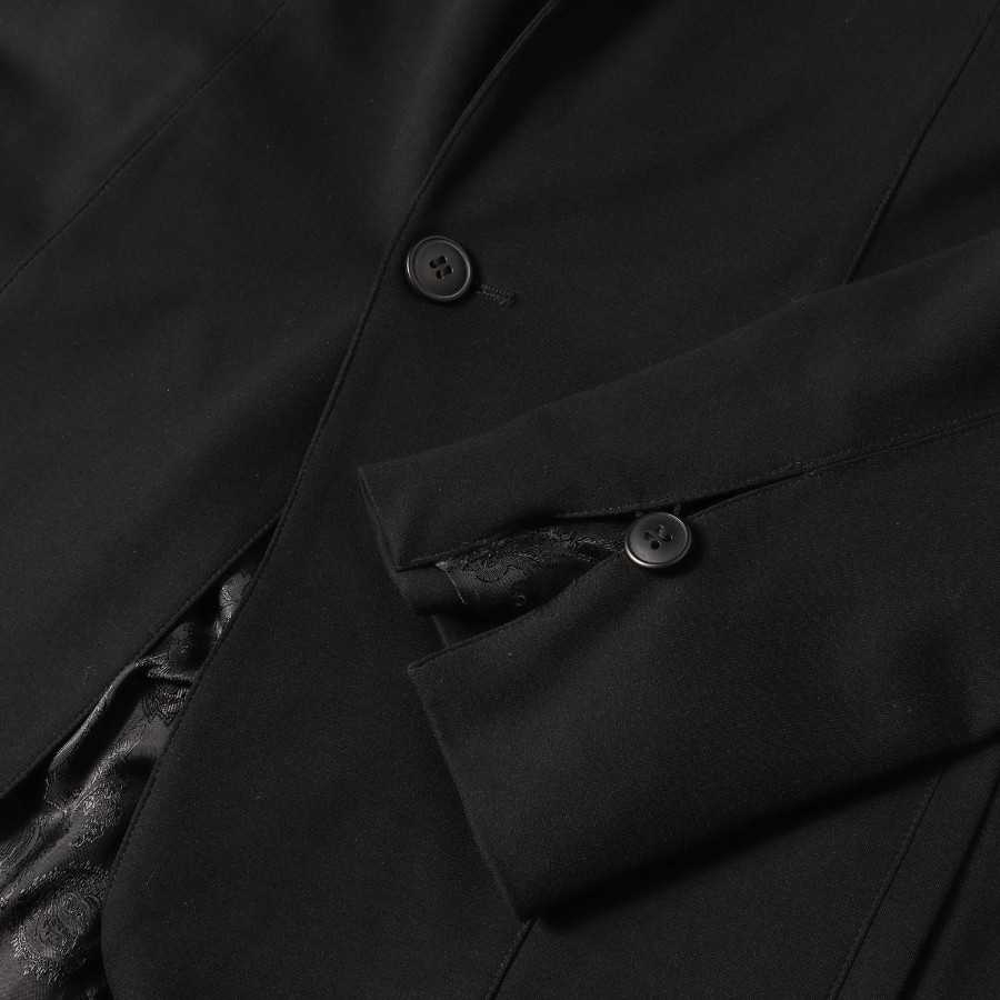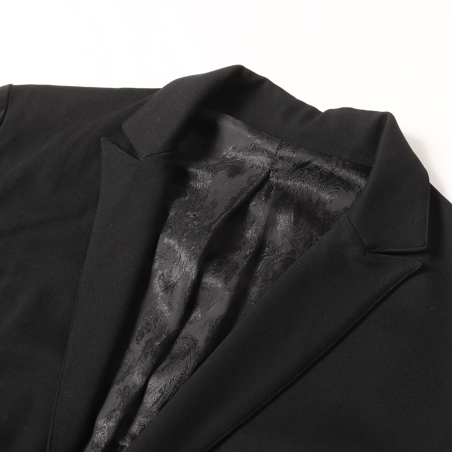 | 商品説明 | ・ストレッチコットン/ナイロン混紡ジャージー素材 ・ピークドラペル ・フロント1つボタン ・フロントダーツ ・袖先本切羽ループ1つボタン ・ペイズリー柄刺繍総裏地 ・センターベント仕様 |