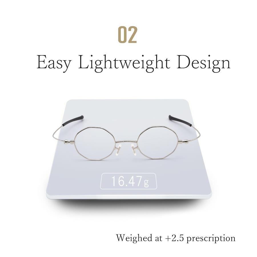 まるで本に挟む栞のようにフラットに薄く折り畳める、スリムで薄くておしゃれな老眼鏡。独自の折り畳み式の鼻パッドを採用し、収納時には薄く、使用時には立体的にお鼻にフィットして快適な使い心地を実現しました。柔らかなカーブを描くテンプルはお顔に優しく沿うので、耳の上が痛くなりにくく快適です。軽量設計なので、お顔に負担をかけにくくお仕事や趣味に没頭できます。