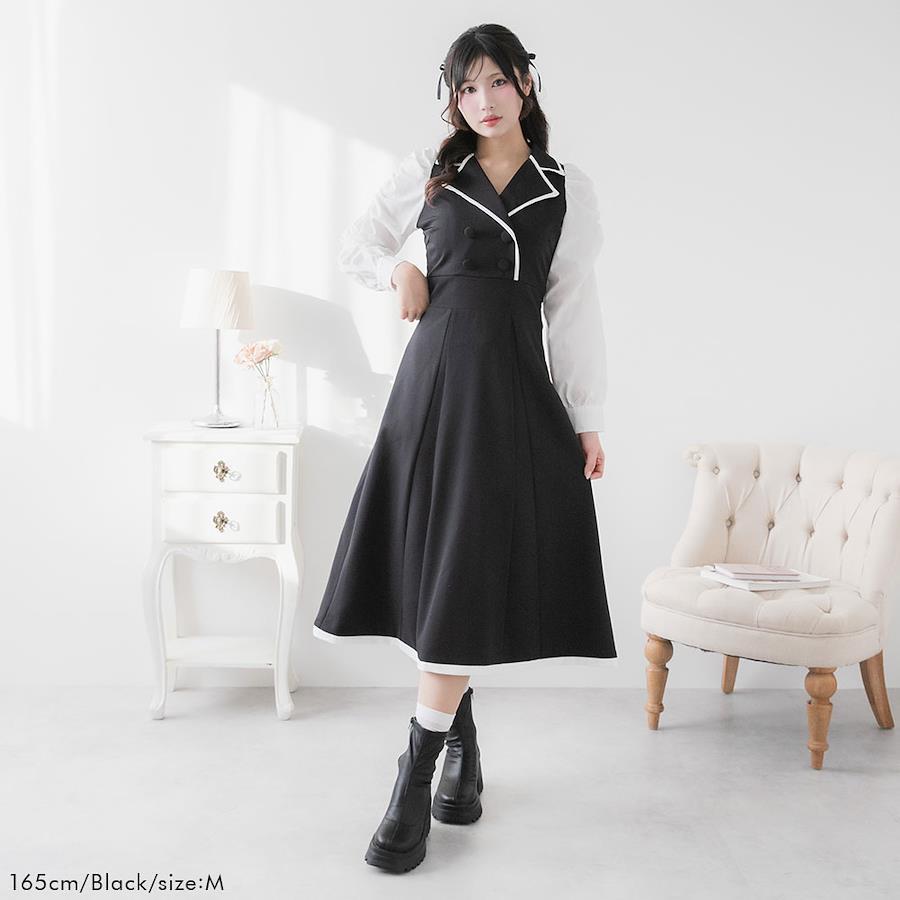 テーラードデザイン異素材ドッキングワンピースのご紹介。