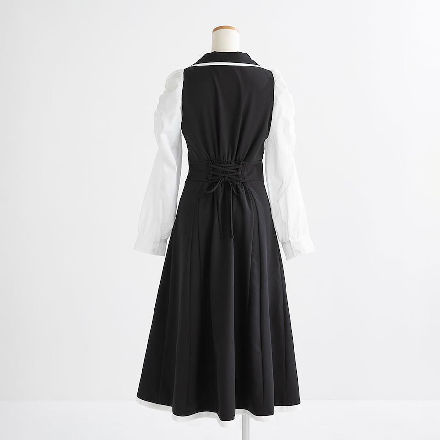 テーラードデザイン異素材ドッキングワンピースのご紹介。