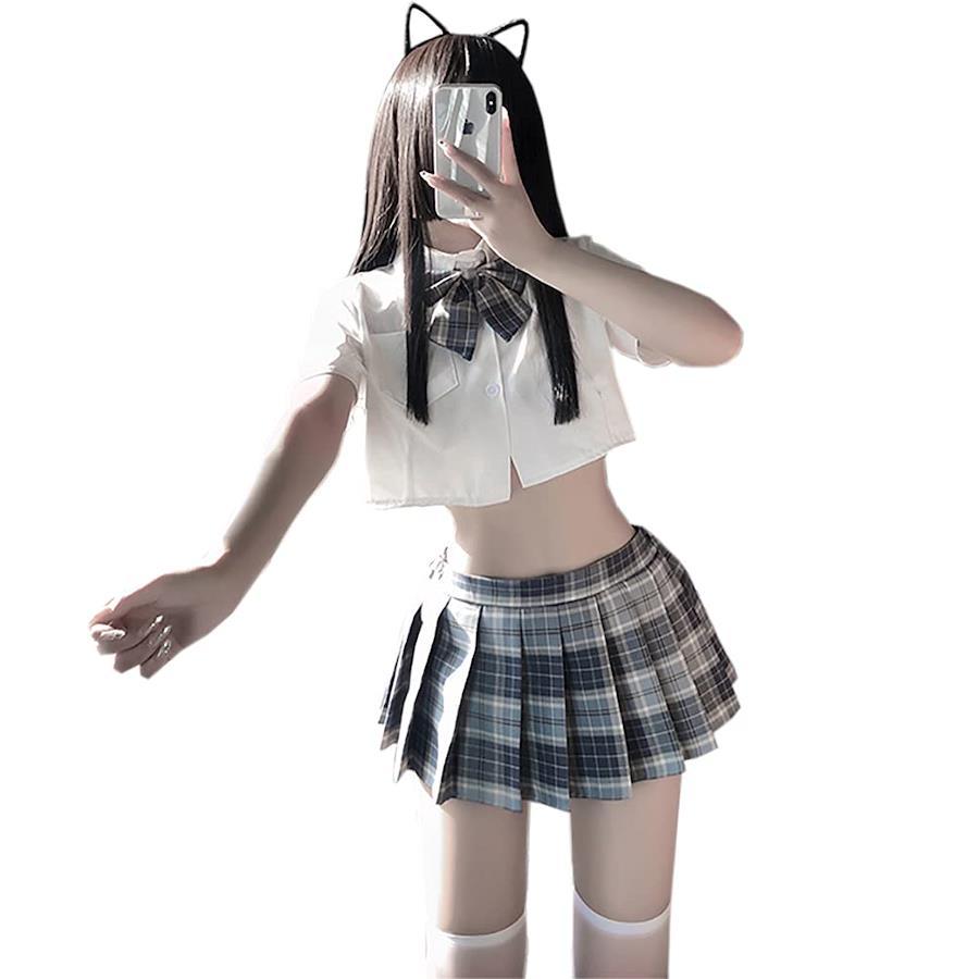 SHLYMP セーラー服 セクシー コスプレ エロ 過激 エッチ な えろい ランジェリー 下着 へそ出し 半袖 海軍風 JK 制服誘惑 高校生 学生 女子高生 可愛い かわいい レディース 女性 仮装 衣装 トップス ミニスカート ネクタイ フリーサイズ グレー