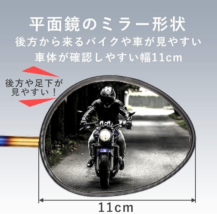「シンプルなデザイン」デザインはシンプルになっておりますので、バイクに合わせやすくコンパクトなミラー形状で隙間や車間のすり抜けもしやすくなっております。