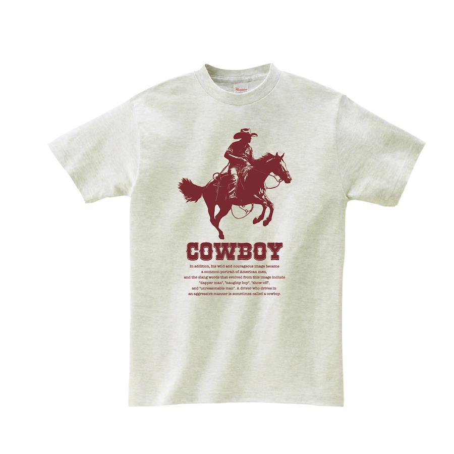 アメリカ西部開拓時代のカウボーイのTシャツです。 ※画像ははめ込み画像となり、実際とは多少異なりますので予めご了承ください。 ※サイズ表をよくご確認の上ご購入ください。 ※受注生産となるため、返品、交換はご遠慮ください。