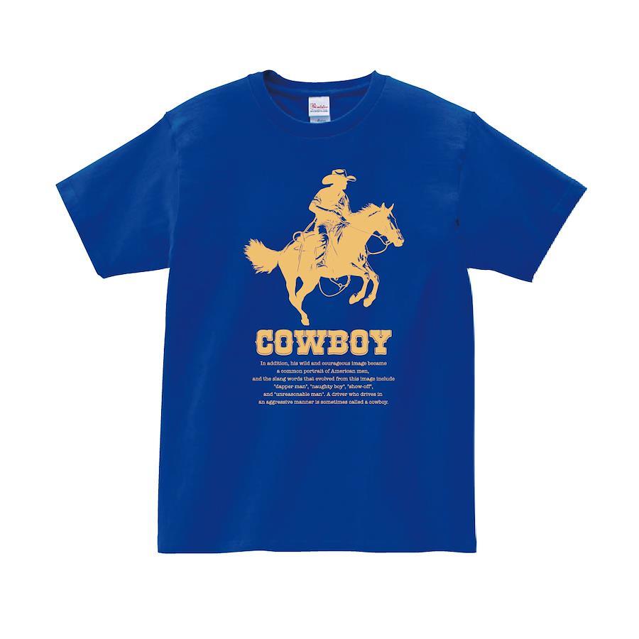 アメリカ西部開拓時代のカウボーイのTシャツです。 ※画像ははめ込み画像となり、実際とは多少異なりますので予めご了承ください。 ※サイズ表をよくご確認の上ご購入ください。 ※受注生産となるため、返品、交換はご遠慮ください。