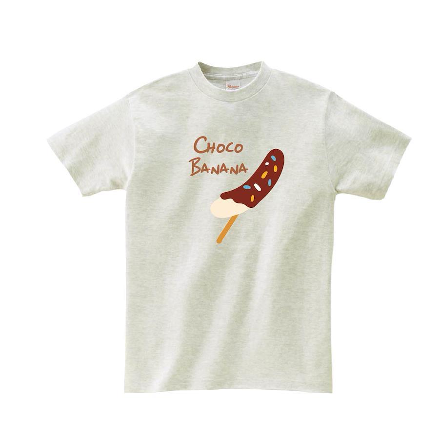 チョコバナナのポップなイラストデザインTシャツです。※画像ははめ込み画像となり、実際とは多少異なりますので予めご了承ください。 ※サイズ表をよくご確認の上ご購入ください。 ※受注生産となるため、返品、交換はご遠慮ください。