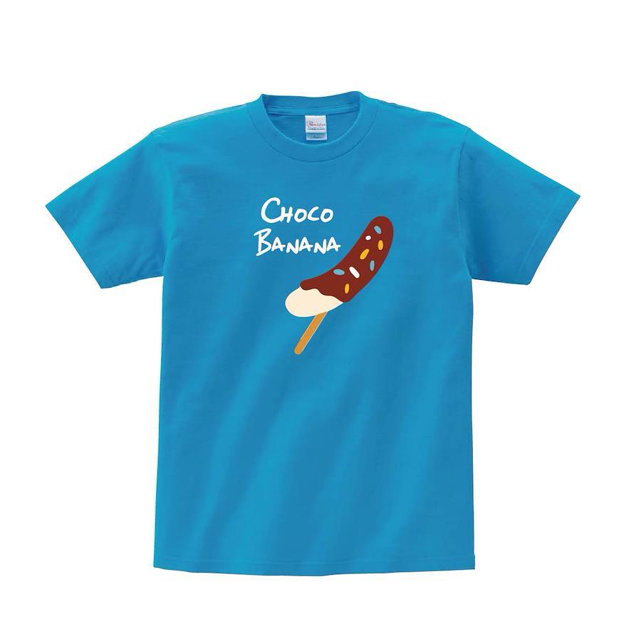 チョコバナナのポップなイラストデザインTシャツです。※画像ははめ込み画像となり、実際とは多少異なりますので予めご了承ください。 ※サイズ表をよくご確認の上ご購入ください。 ※受注生産となるため、返品、交換はご遠慮ください。