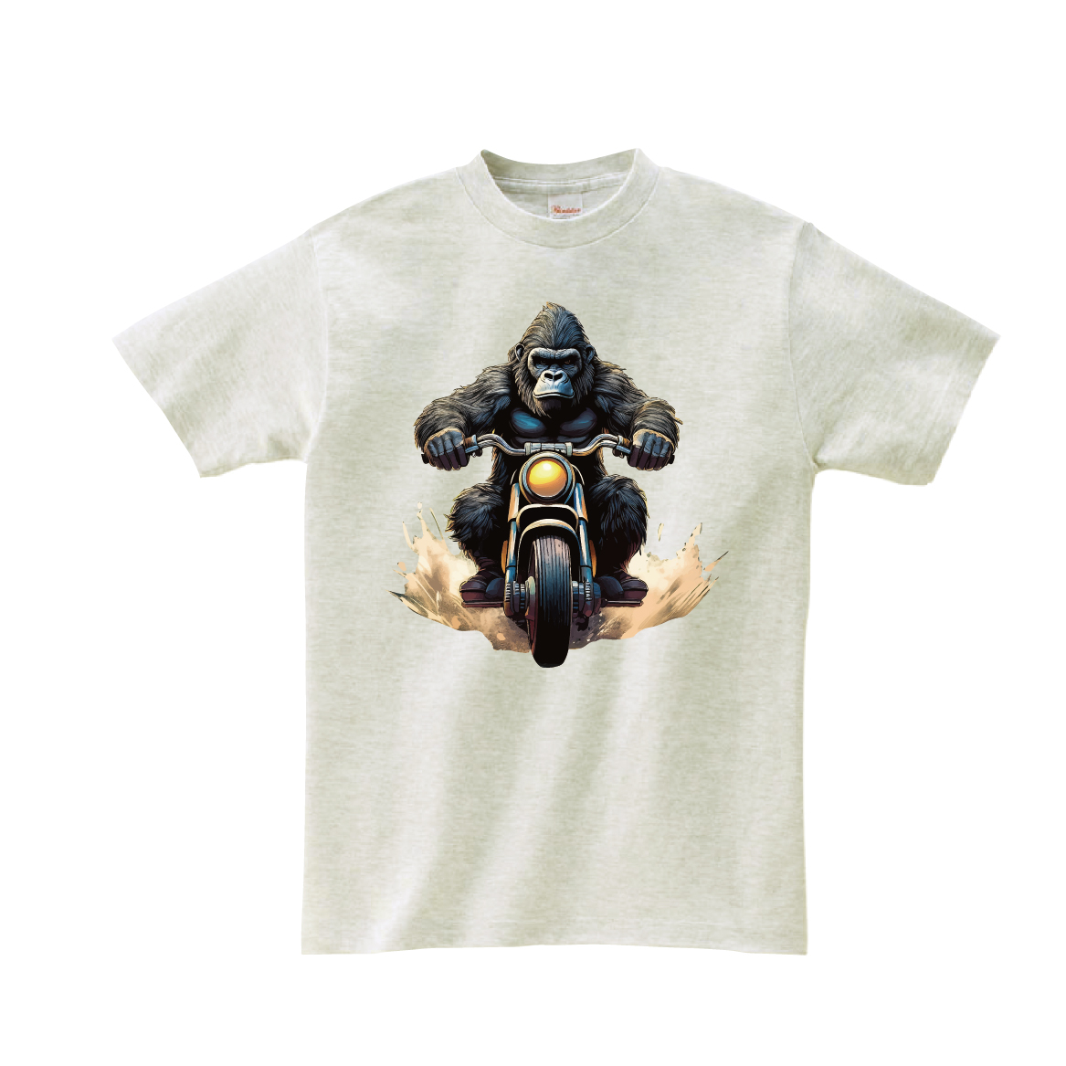 リアルなゴリラが颯爽とバイクに乗っているTシャツです。※画像ははめ込み画像となり、実際とは多少異なりますので予めご了承ください。 ※サイズ表をよくご確認の上ご購入ください。 ※受注生産となるため、返品、交換はご遠慮ください。