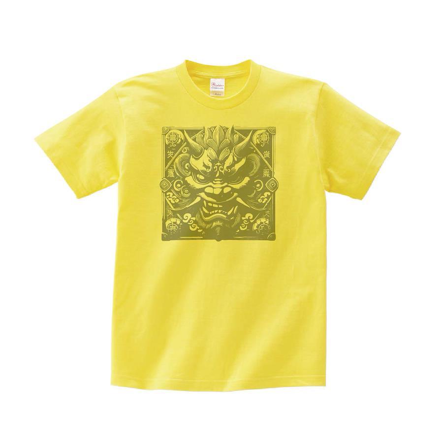 恐ろしい鬼瓦のイラストデザインTシャツです。※画像ははめ込み画像となり、実際とは多少異なりますので予めご了承ください。 ※サイズ表をよくご確認の上ご購入ください。 ※受注生産となるため、返品、交換はご遠慮ください。