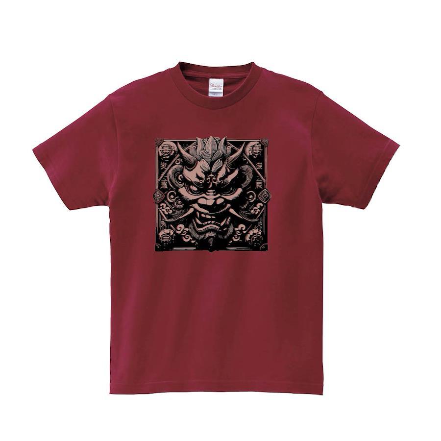 恐ろしい鬼瓦のイラストデザインTシャツです。※画像ははめ込み画像となり、実際とは多少異なりますので予めご了承ください。 ※サイズ表をよくご確認の上ご購入ください。 ※受注生産となるため、返品、交換はご遠慮ください。