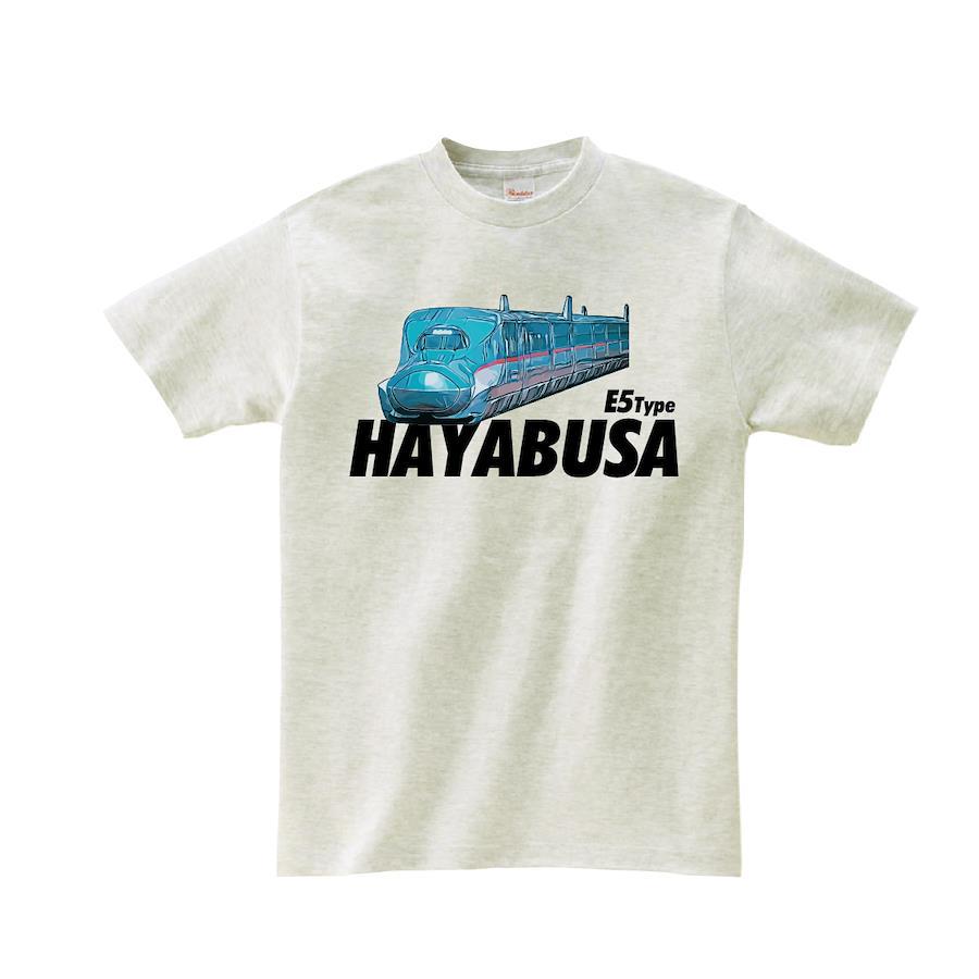 新幹線E5系はやぶさのTシャツです。※画像ははめ込み画像となり、実際とは多少異なりますので予めご了承ください。 ※サイズ表をよくご確認の上ご購入ください。 ※受注生産となるため、返品、交換はご遠慮ください。
