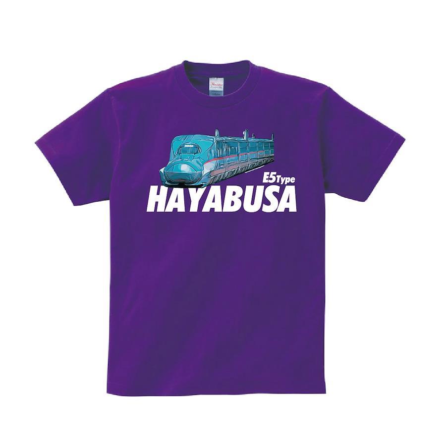 新幹線E5系はやぶさのTシャツです。※画像ははめ込み画像となり、実際とは多少異なりますので予めご了承ください。 ※サイズ表をよくご確認の上ご購入ください。 ※受注生産となるため、返品、交換はご遠慮ください。