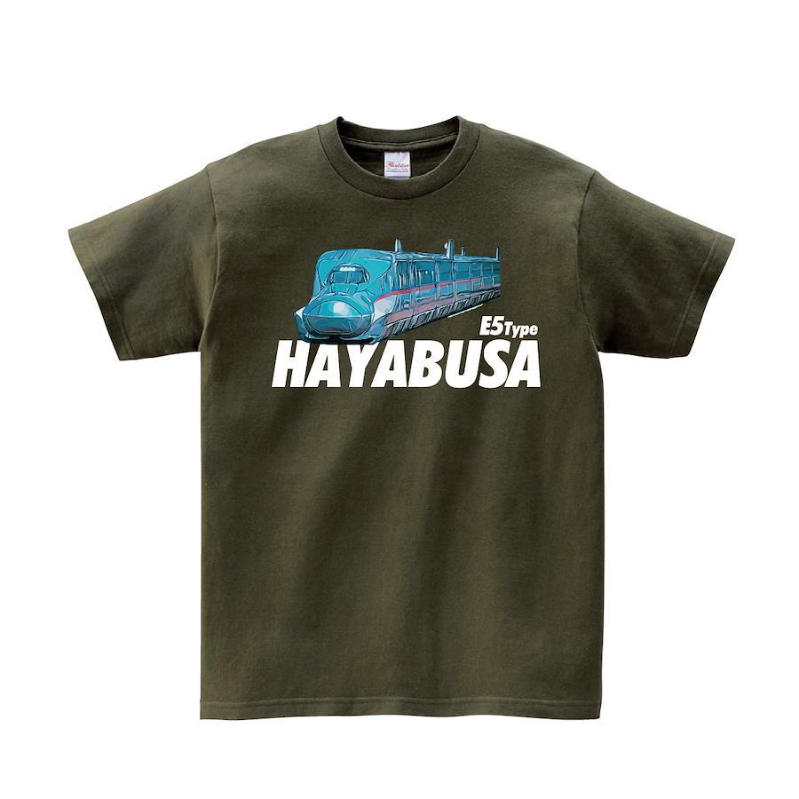 新幹線E5系はやぶさのTシャツです。※画像ははめ込み画像となり、実際とは多少異なりますので予めご了承ください。 ※サイズ表をよくご確認の上ご購入ください。 ※受注生産となるため、返品、交換はご遠慮ください。
