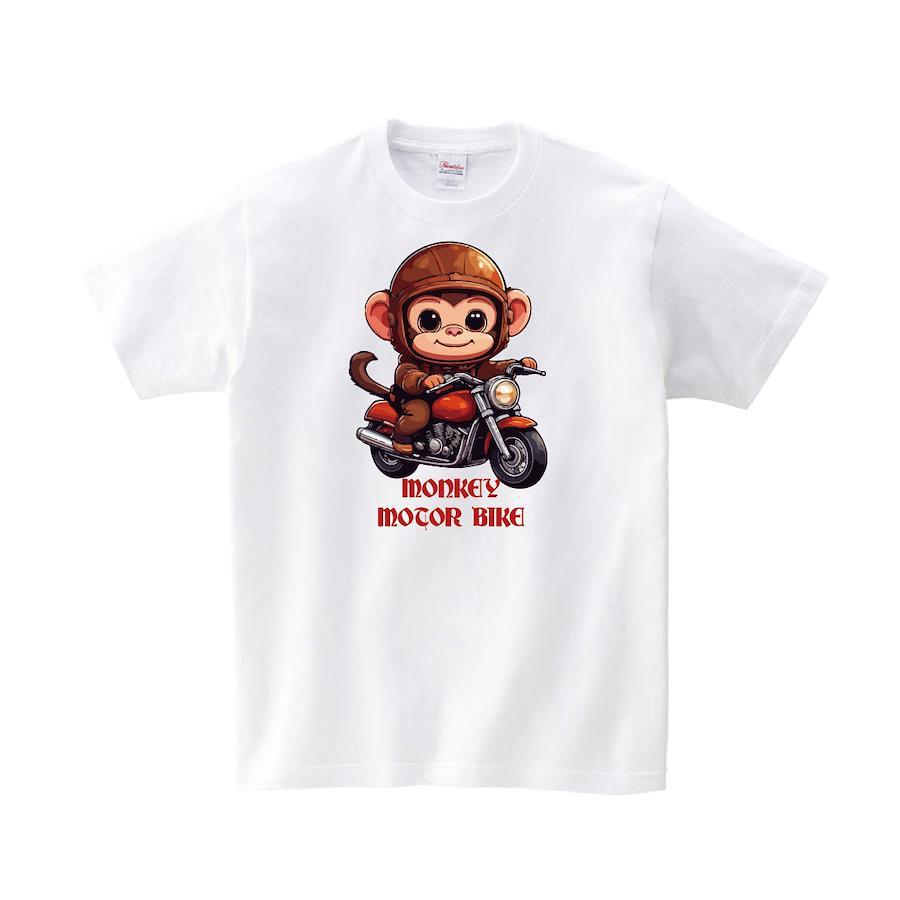 Tシャツ 半袖 猿 子猿 モンキー バイク モーターバイク ツーリング リンクコーデ グッズ オリジナル デザイン メンズ レディース キッズ [ 5.6オンス 厚手 綿100% 豊富なカラー 長持ち 肌触り良い 天然素材] コットン シャツ 白 黒 アウトドア