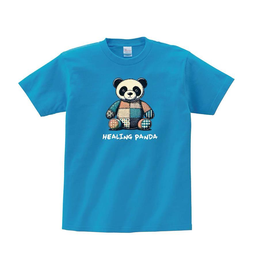 パッチワークのパンダさん。レトロ感のあるかわいいイラストデザインTシャツです。※画像ははめ込み画像となり、実際とは多少異なりますので予めご了承ください。 ※サイズ表をよくご確認の上ご購入ください。 ※受注生産となるため、返品、交換はご遠慮ください。