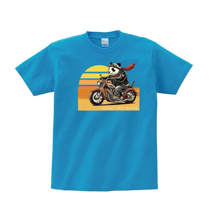 Tシャツ 半袖 パンダ サンセット ぱんだ 熊猫 バイク レトロ ツーリング 波 砂浜 赤い波 マシン リンクコーデ グッズ オリジナル デザイン メンズ レディース キッズ [ 5.6オンス 厚手 綿100% 豊富なカラー 長持ち 肌触り良い 天然素材] コットン シャツ 白 黒 アウトドア