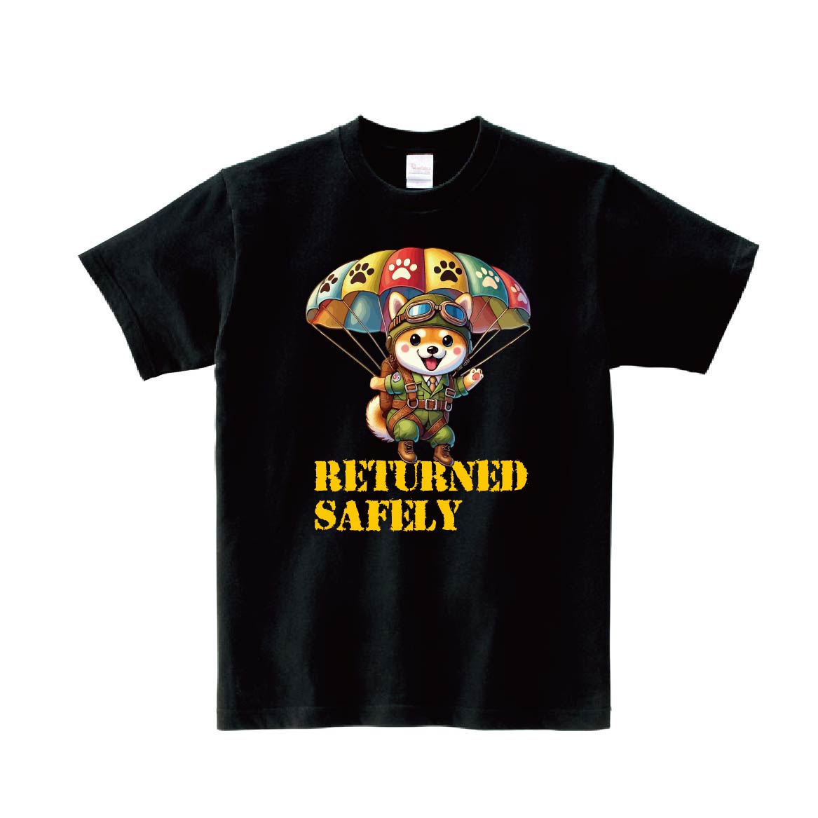 Tシャツ 半袖 柴犬 ミリタリー パラシュート 兵隊 無事帰還 リンクコーデ グッズ オリジナル デザイン メンズ レディース キッズ [ 5.6オンス 厚手 綿100% 豊富なカラー 長持ち 肌触り良い 天然素材] コットン シャツ 白 黒 アウトドア