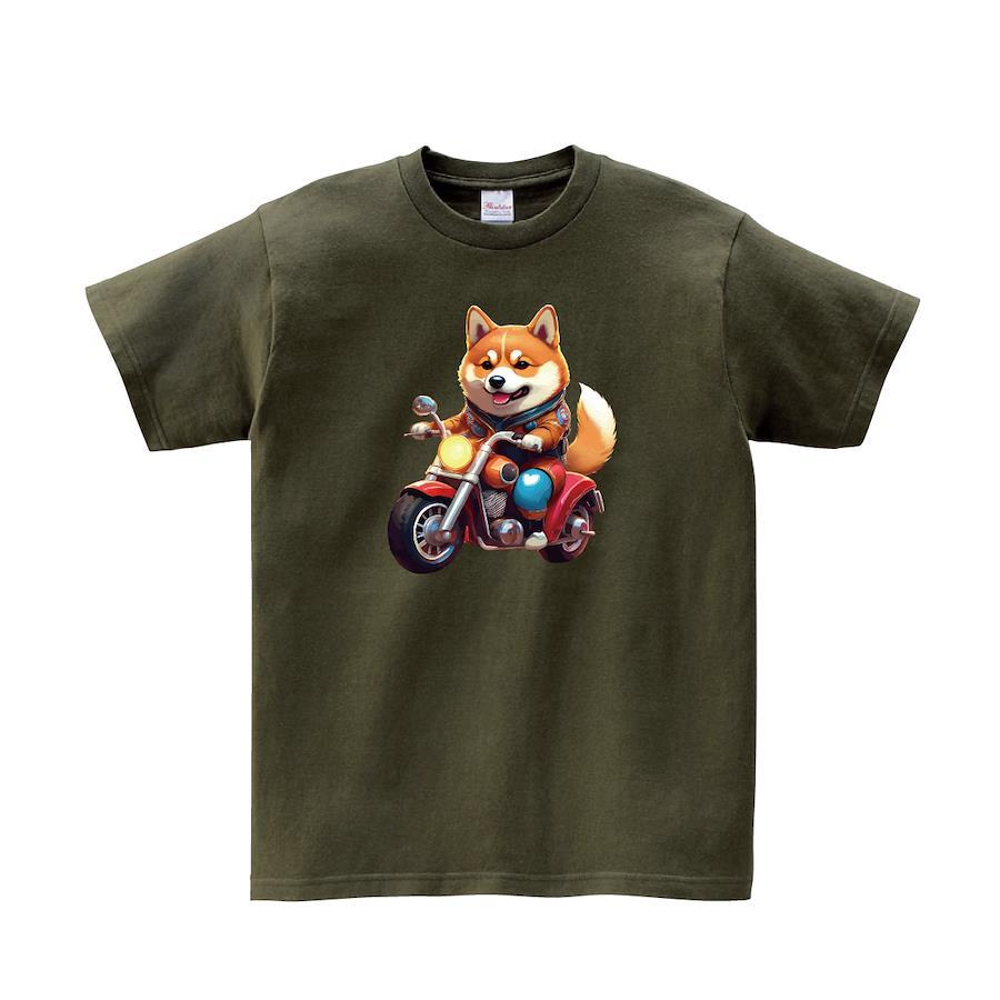 Tシャツ 半袖 柴犬 しばいぬ バイク アメリカン オートバイ ツーリング大 リンクコーデ グッズ オリジナル デザイン メンズ レディース キッズ [ 5.6オンス 厚手 綿100% 豊富なカラー 長持ち 肌触り良い 天然素材] コットン シャツ 白 黒 アウトドア