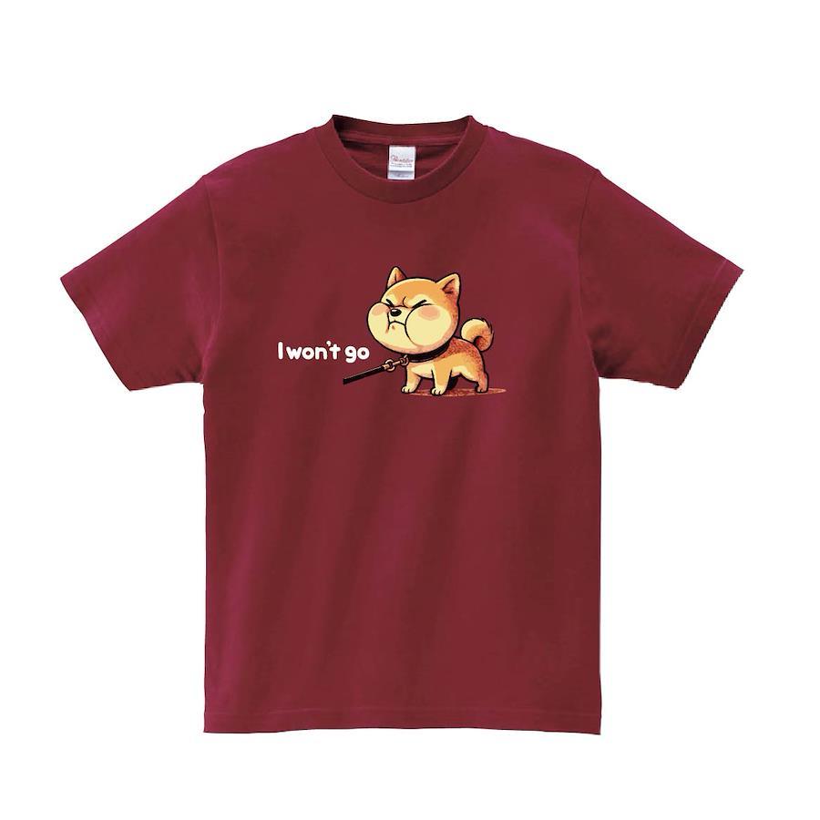 行きたくない。散歩嫌いなシバイヌくんのイラストデザインTシャツです。※画像ははめ込み画像となり、実際とは多少異なりますので予めご了承ください。 ※サイズ表をよくご確認の上ご購入ください。 ※受注生産となるため、返品、交換はご遠慮ください。