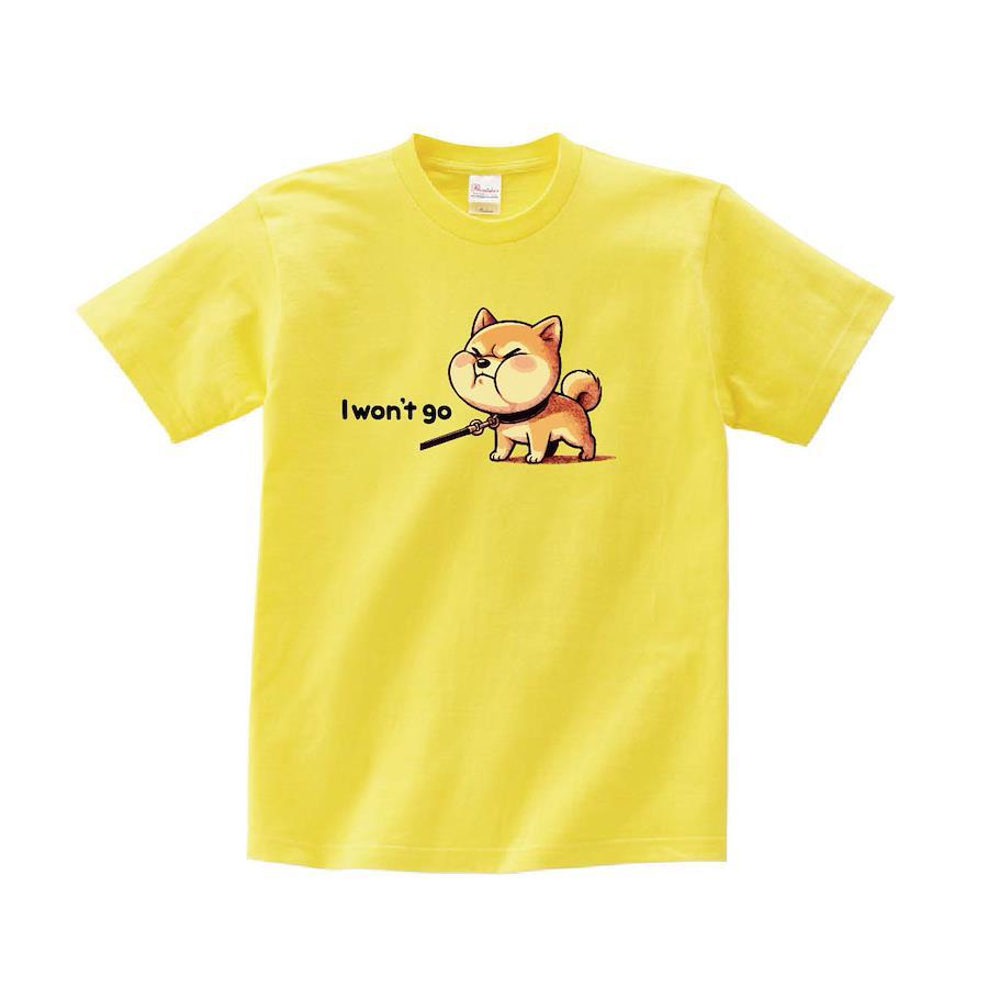 行きたくない。散歩嫌いなシバイヌくんのイラストデザインTシャツです。※画像ははめ込み画像となり、実際とは多少異なりますので予めご了承ください。 ※サイズ表をよくご確認の上ご購入ください。 ※受注生産となるため、返品、交換はご遠慮ください。