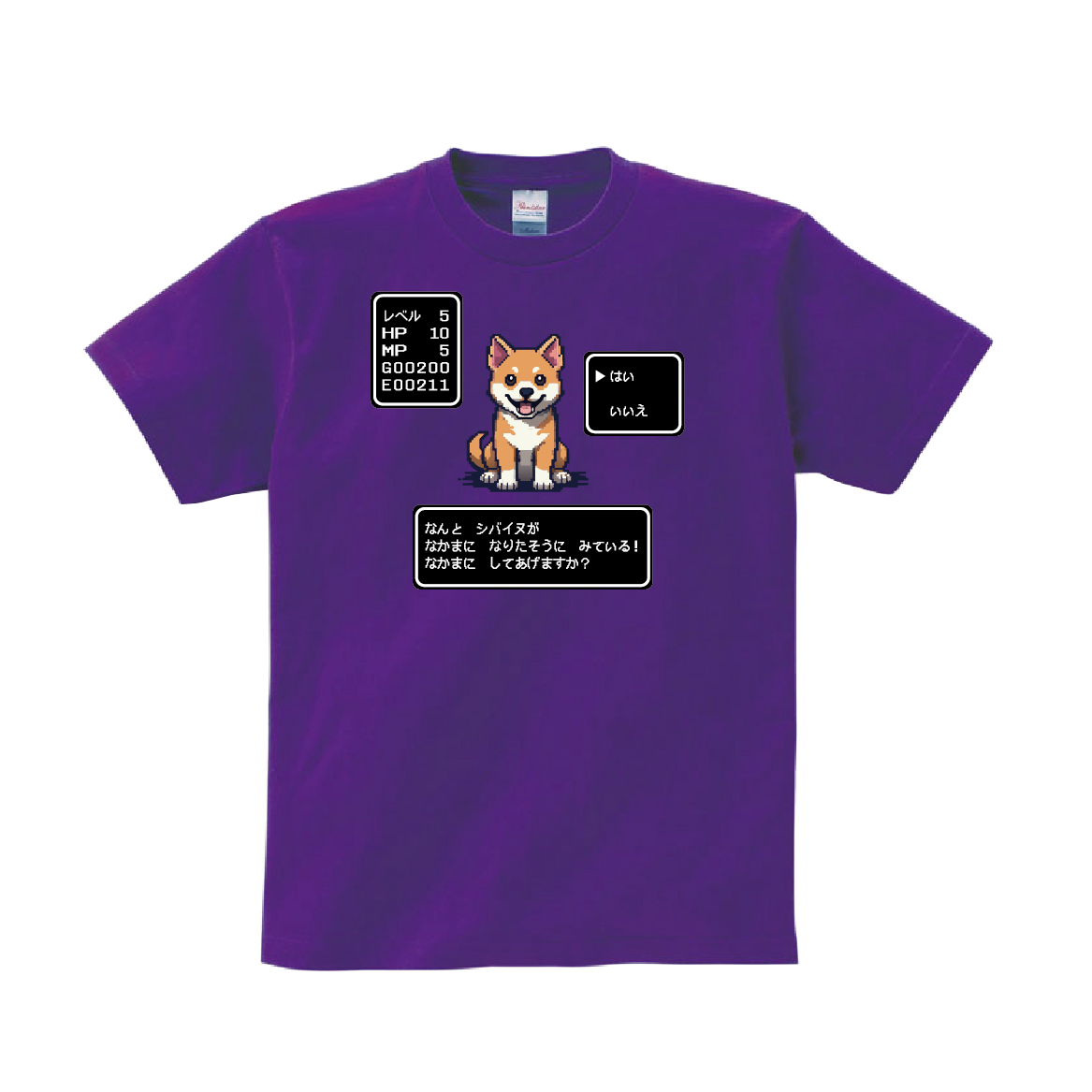 懐かしのレトロゲーム風、柴犬がかわいく仲間のお誘いのおしゃれTシャツです。※画像ははめ込み画像となり、実際とは多少異なりますので予めご了承ください。 ※サイズ表をよくご確認の上ご購入ください。 ※受注生産となるため、返品、交換はご遠慮ください。
