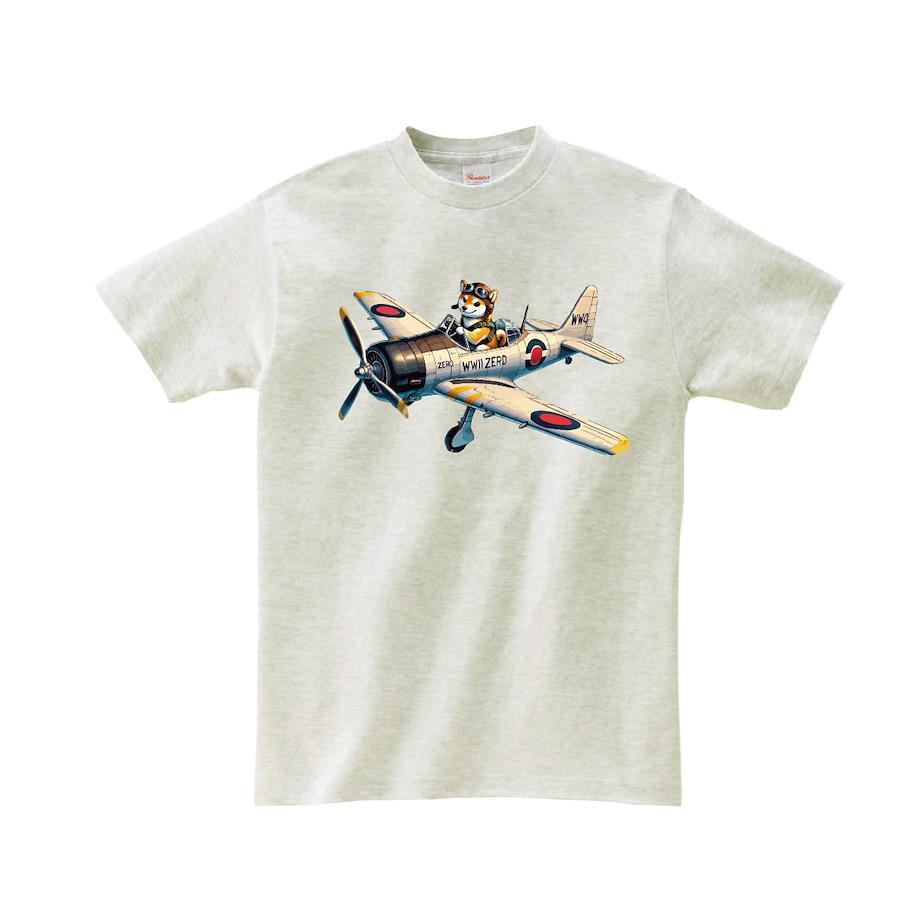零戦に乗っているワイルドな柴犬のTシャツです。※画像ははめ込み画像となり、実際とは多少異なりますので予めご了承ください。 ※サイズ表をよくご確認の上ご購入ください。 ※受注生産となるため、返品、交換はご遠慮ください。