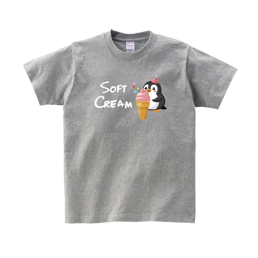 ふんわりいちご味のソフトクリームとペンギンくんのイラストデザインTシャツです。※画像ははめ込み画像となり、実際とは多少異なりますので予めご了承ください。 ※サイズ表をよくご確認の上ご購入ください。 ※受注生産となるため、返品、交換はご遠慮ください。