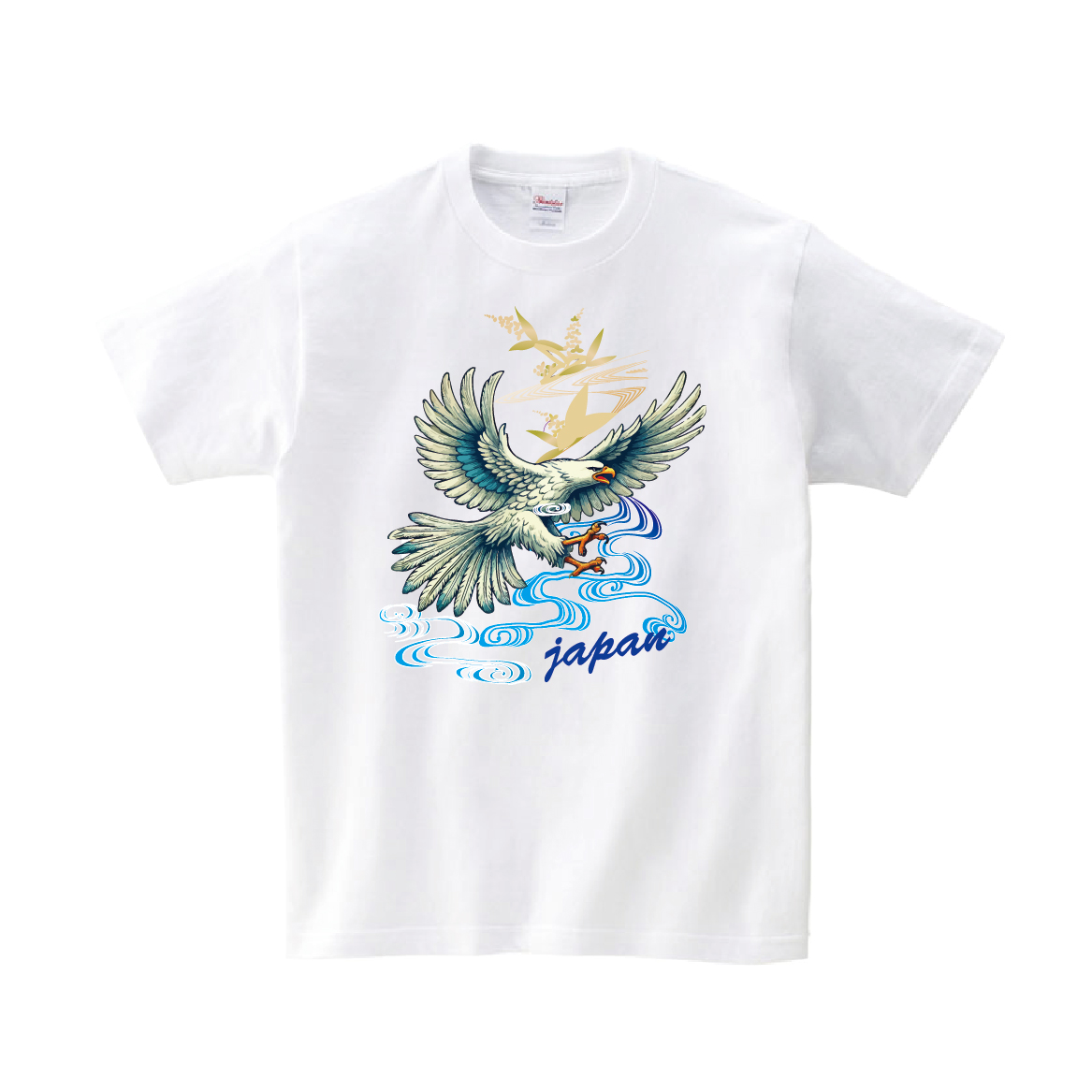刺繍風な鷲、イーグルを和模様であしらったデザインTシャツです。※画像ははめ込み画像となり、実際とは多少異なりますので予めご了承ください。 ※サイズ表をよくご確認の上ご購入ください。 ※受注生産となるため、返品、交換はご遠慮ください。