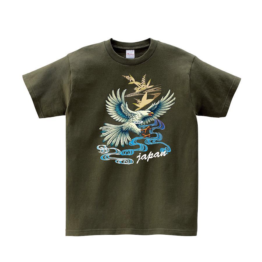 Tシャツ 半袖 スカジャン 鷲 イーグル 鷹 流水 和模様 和風 刺繍風リンクコーデ グッズ オリジナル デザイン メンズ レディース キッズ [ 5.6オンス 厚手 綿100% 豊富なカラー 長持ち 肌触り良い 天然素材] コットン シャツ 白 黒 アウトドア