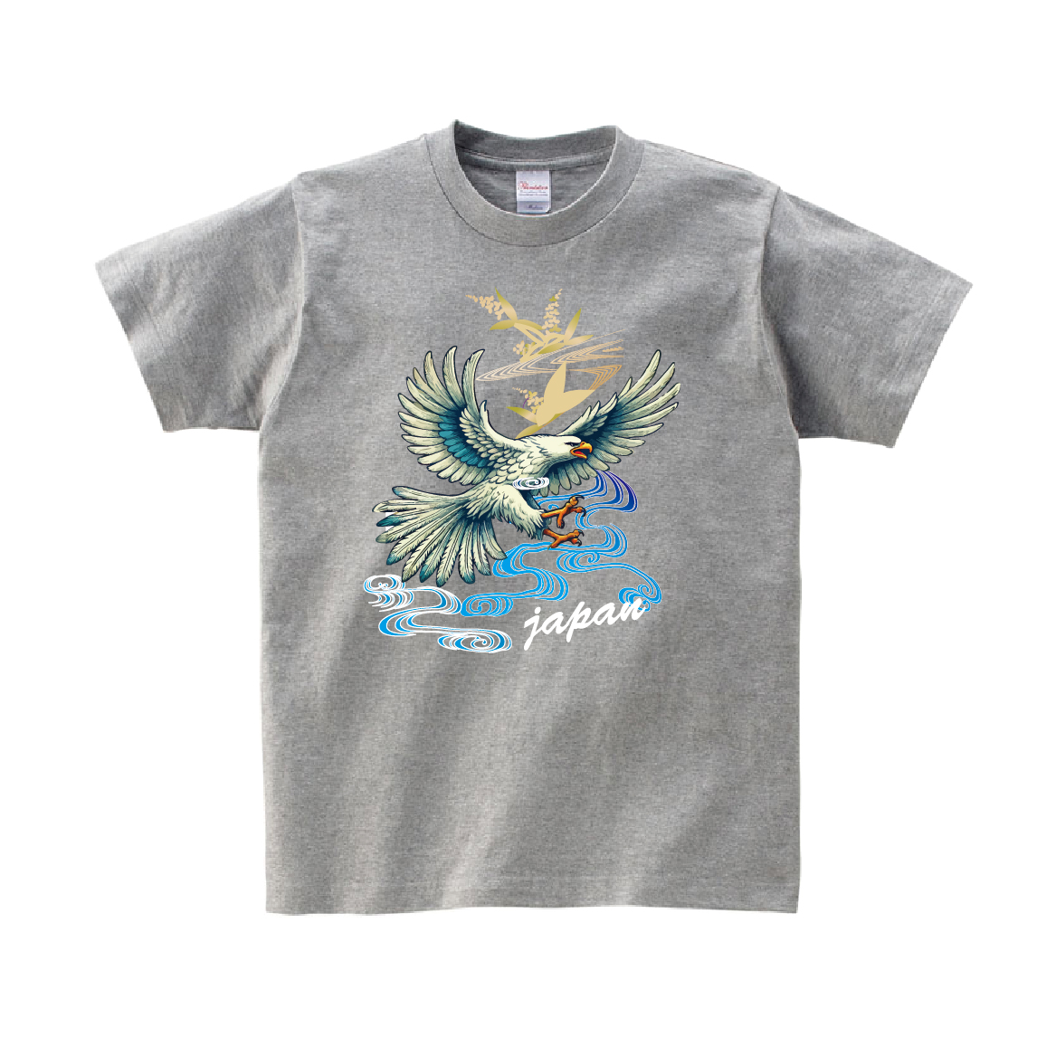 刺繍風な鷲、イーグルを和模様であしらったデザインTシャツです。※画像ははめ込み画像となり、実際とは多少異なりますので予めご了承ください。 ※サイズ表をよくご確認の上ご購入ください。 ※受注生産となるため、返品、交換はご遠慮ください。