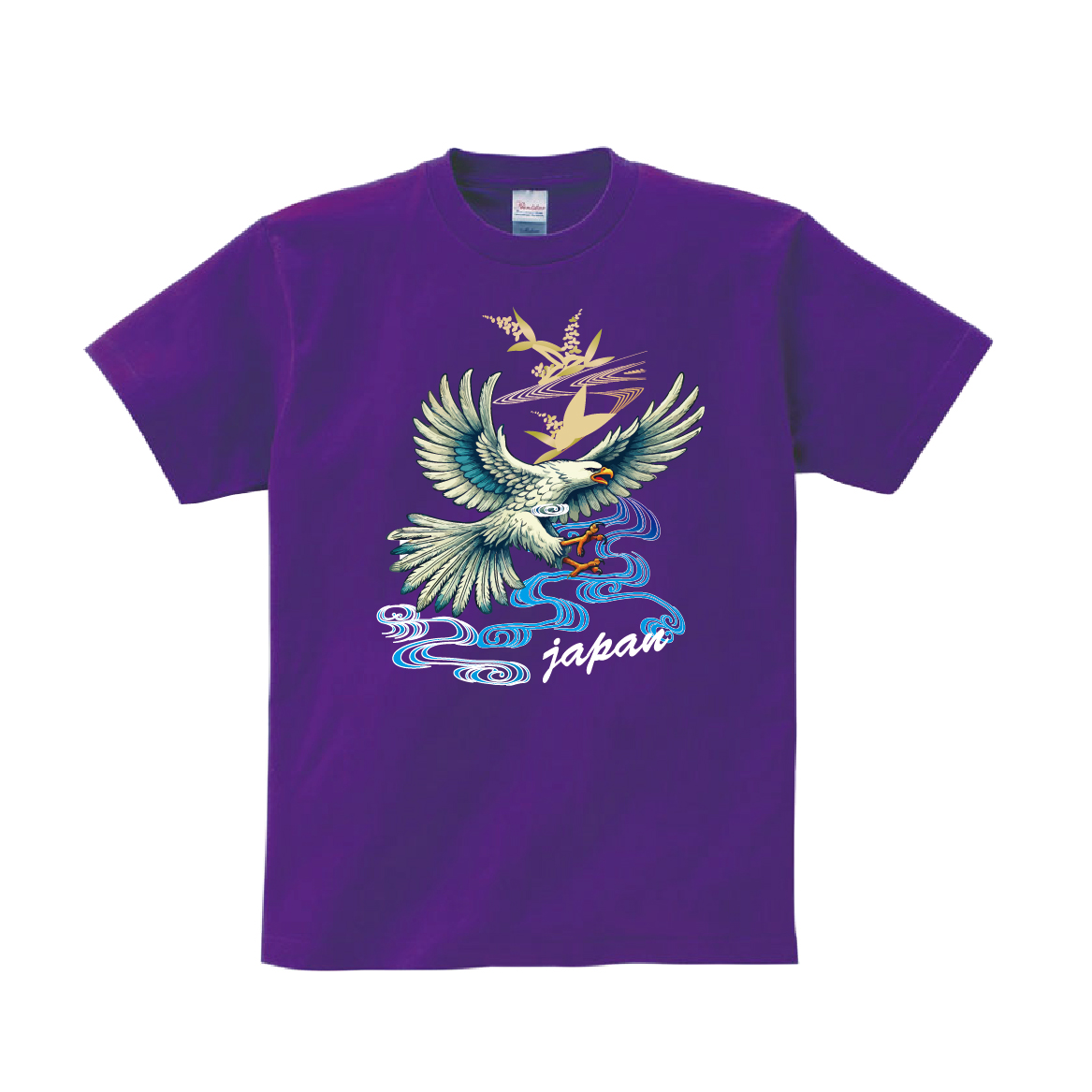 刺繍風な鷲、イーグルを和模様であしらったデザインTシャツです。※画像ははめ込み画像となり、実際とは多少異なりますので予めご了承ください。 ※サイズ表をよくご確認の上ご購入ください。 ※受注生産となるため、返品、交換はご遠慮ください。