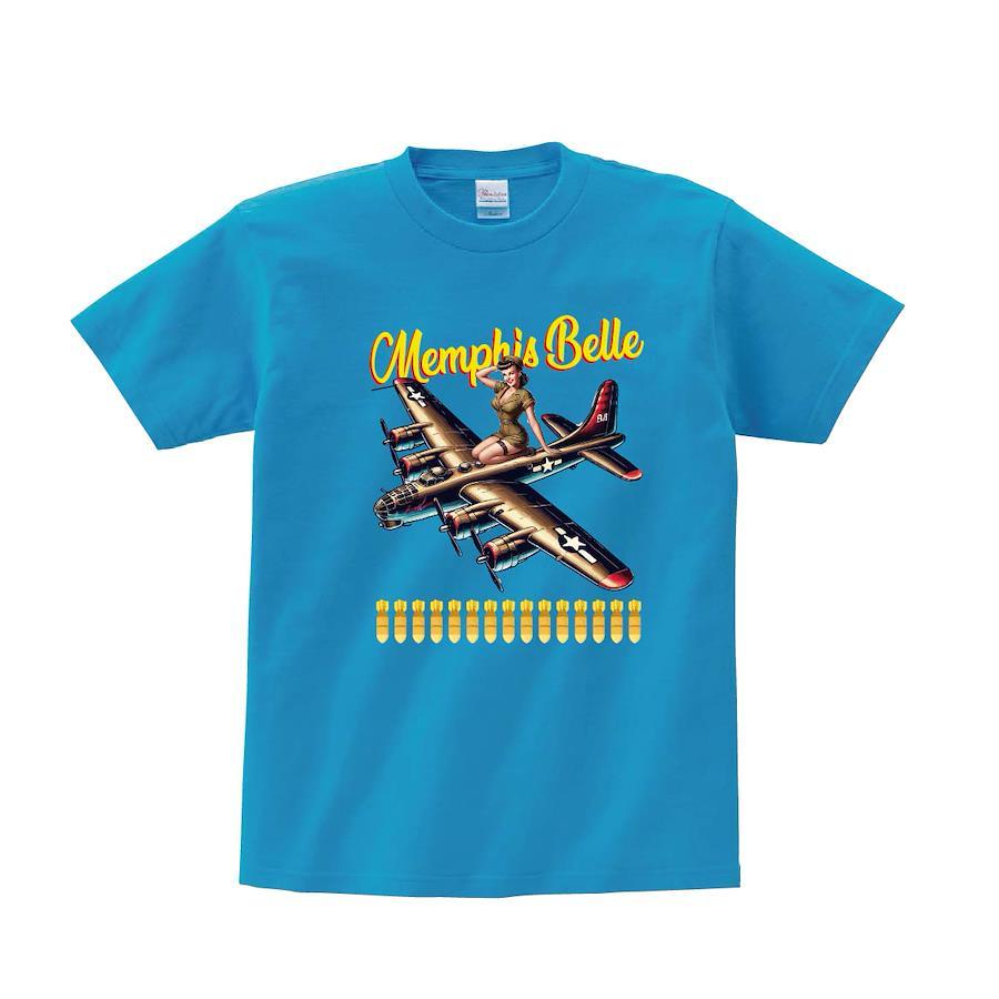 有名な爆撃機、メンフィスベルのビンテージ感のあるデザインTシャツです。※画像ははめ込み画像となり、実際とは多少異なりますので予めご了承ください。 ※サイズ表をよくご確認の上ご購入ください。 ※受注生産となるため、返品、交換はご遠慮ください。