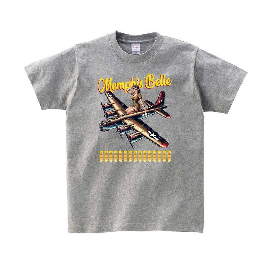 有名な爆撃機、メンフィスベルのビンテージ感のあるデザインTシャツです。※画像ははめ込み画像となり、実際とは多少異なりますので予めご了承ください。 ※サイズ表をよくご確認の上ご購入ください。 ※受注生産となるため、返品、交換はご遠慮ください。