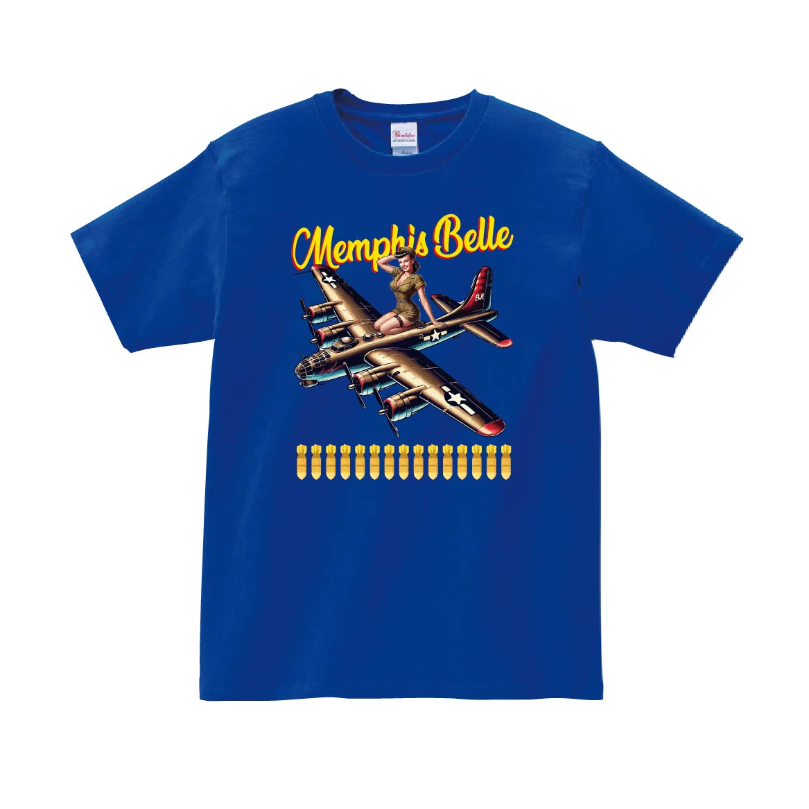 有名な爆撃機、メンフィスベルのビンテージ感のあるデザインTシャツです。※画像ははめ込み画像となり、実際とは多少異なりますので予めご了承ください。 ※サイズ表をよくご確認の上ご購入ください。 ※受注生産となるため、返品、交換はご遠慮ください。