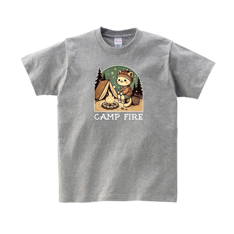 Tシャツ 半袖 キャンプ キャンプファイヤー アウトドア 焚き火 猫 ねこ ソロキャンプ CAMP リンクコーデ グッズ オリジナル デザイン メンズ レディース キッズ [ 5.6オンス 厚手 綿100% 豊富なカラー 長持ち 肌触り良い 天然素材] コットン シャツ 白 黒 アウトドア