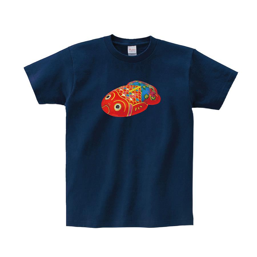 昭和レトロな金魚のブリキの玩具のTシャツです。※画像ははめ込み画像となり、実際とは多少異なりますので予めご了承ください。 ※サイズ表をよくご確認の上ご購入ください。 ※受注生産となるため、返品、交換はご遠慮ください。
