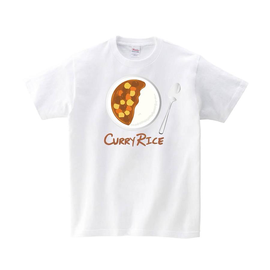 ポップなカレーライスのイラストデザインTシャツです。※画像ははめ込み画像となり、実際とは多少異なりますので予めご了承ください。 ※サイズ表をよくご確認の上ご購入ください。 ※受注生産となるため、返品、交換はご遠慮ください。