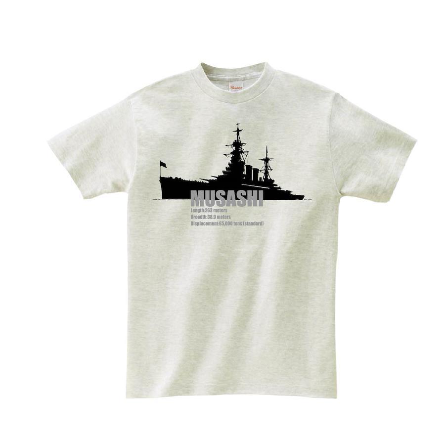太平洋戦争時の戦艦武蔵のTシャツです。ミリタリー好きの方へのプレゼントや贈りものにも最適です。※画像ははめ込み画像となり、実際とは多少異なりますので予めご了承ください。 ※サイズ表をよくご確認の上ご購入ください。 ※受注生産となるため、返品、交換はご遠慮ください。