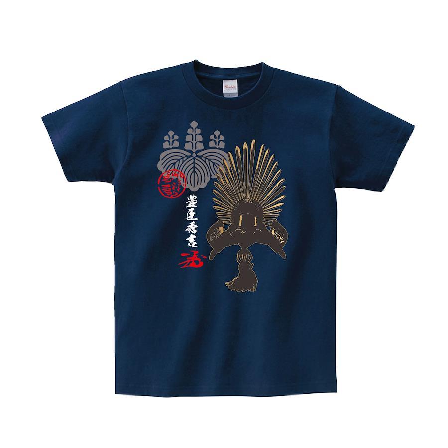 Tシャツ 半袖 豊臣秀吉 ひでよし 羽柴秀吉 戦国武将 兜 甲冑 家紋 花押 さる リンクコーデ グッズ オリジナル デザイン メンズ レディース キッズ [ 5.6オンス 厚手 綿100% 豊富なカラー 長持ち 肌触り良い 天然素材] コットン シャツ 白 黒 アウトドア
