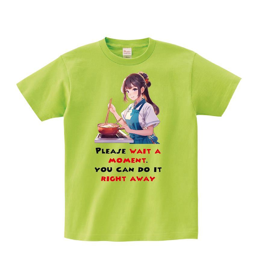 Tシャツ 半袖 料理 お料理 キッチン エプロン 萌 萌え 美少女 かわいい アニメ キャラ リンクコーデ グッズ オリジナル デザイン メンズ レディース キッズ [ 5.6オンス 厚手 綿100% 豊富なカラー 長持ち 肌触り良い 天然素材] コットン シャツ 白 黒 アウトドア