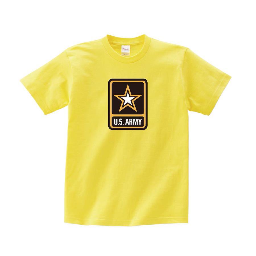 アメリカ陸軍、ミリタリースターのエンブレムデザインTシャツです。※画像ははめ込み画像となり、実際とは多少異なりますので予めご了承ください。 ※サイズ表をよくご確認の上ご購入ください。 ※受注生産となるため、返品、交換はご遠慮ください。