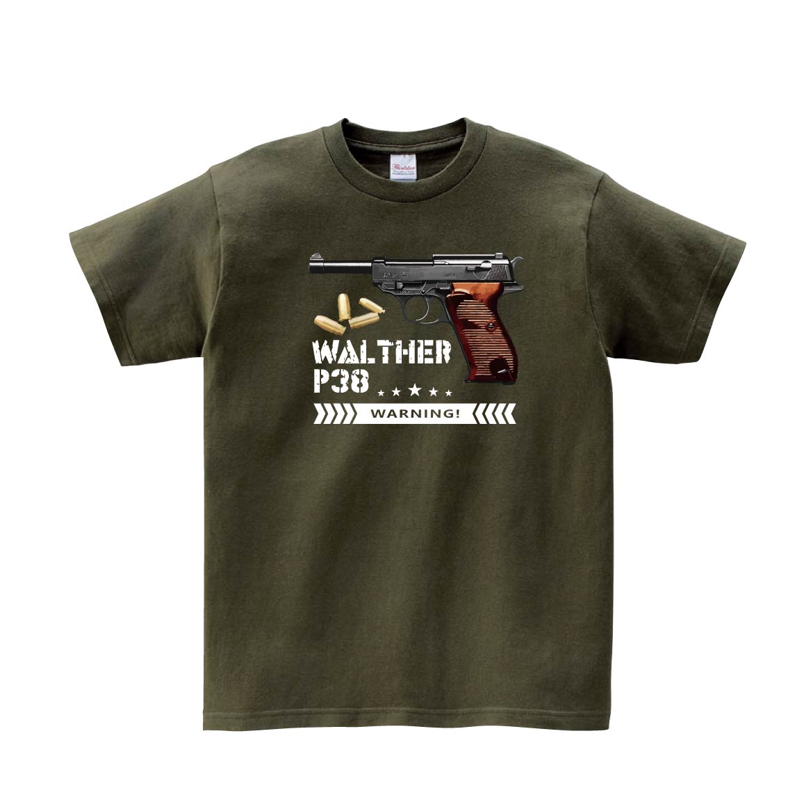 ワルサーP38のデザインTシャツです。※画像ははめ込み画像となり、実際とは多少異なりますので予めご了承ください。 ※サイズ表をよくご確認の上ご購入ください。 ※受注生産となるため、返品、交換はご遠慮ください。