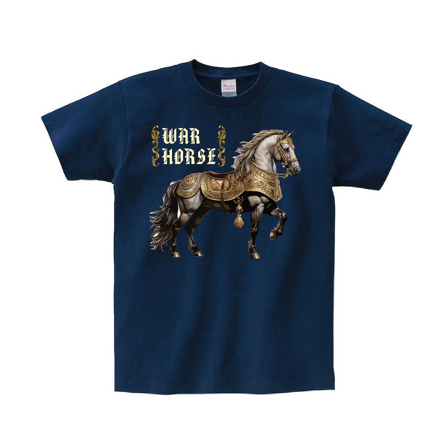 【Tシャツ 半袖 】 軍馬 戦馬 馬 戦う馬 中世ヨーロッパ 軍隊 WAR HORSE 装飾 リンクコーデ グッズ オリジナル デザイン メンズ レディース キッズ [ 5.6オンス 厚手 綿100% 豊富なカラー 長持ち 肌触り良い 天然素材] コットン シャツ 白 黒 アウトドア