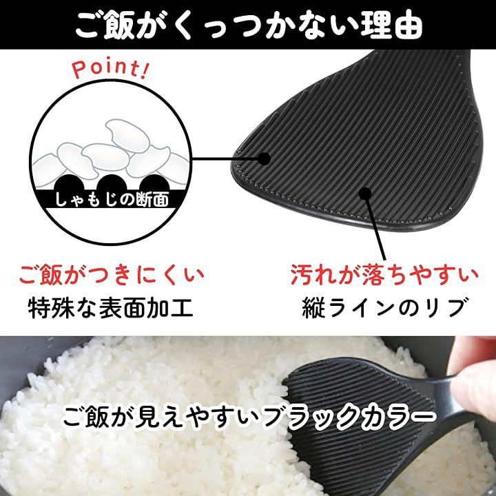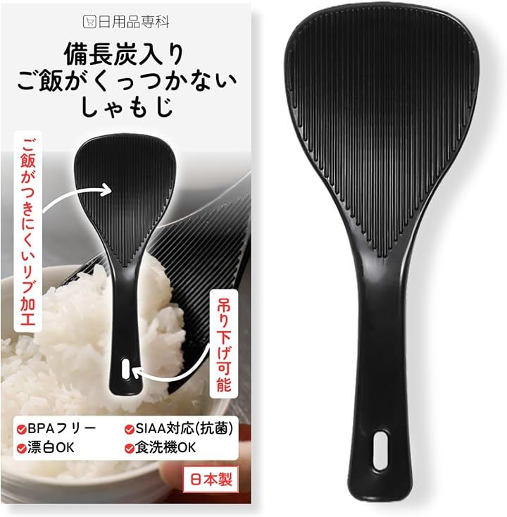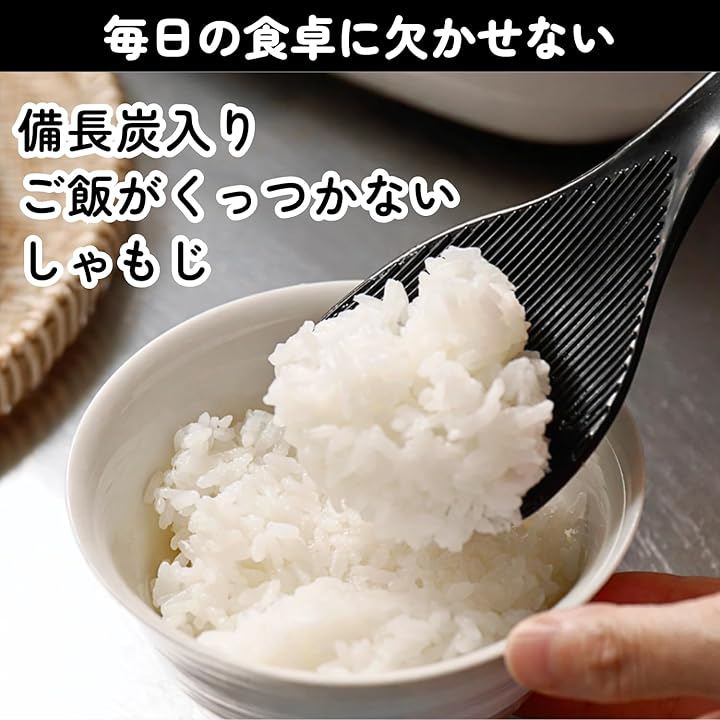 SIAA抗菌・BPAフリーしゃもじ くっつかない ごはんしゃもじ 炊飯器用 備長炭入り エンボス加工 ご飯がつきにくい 日本製