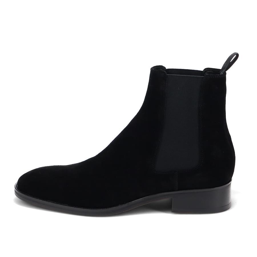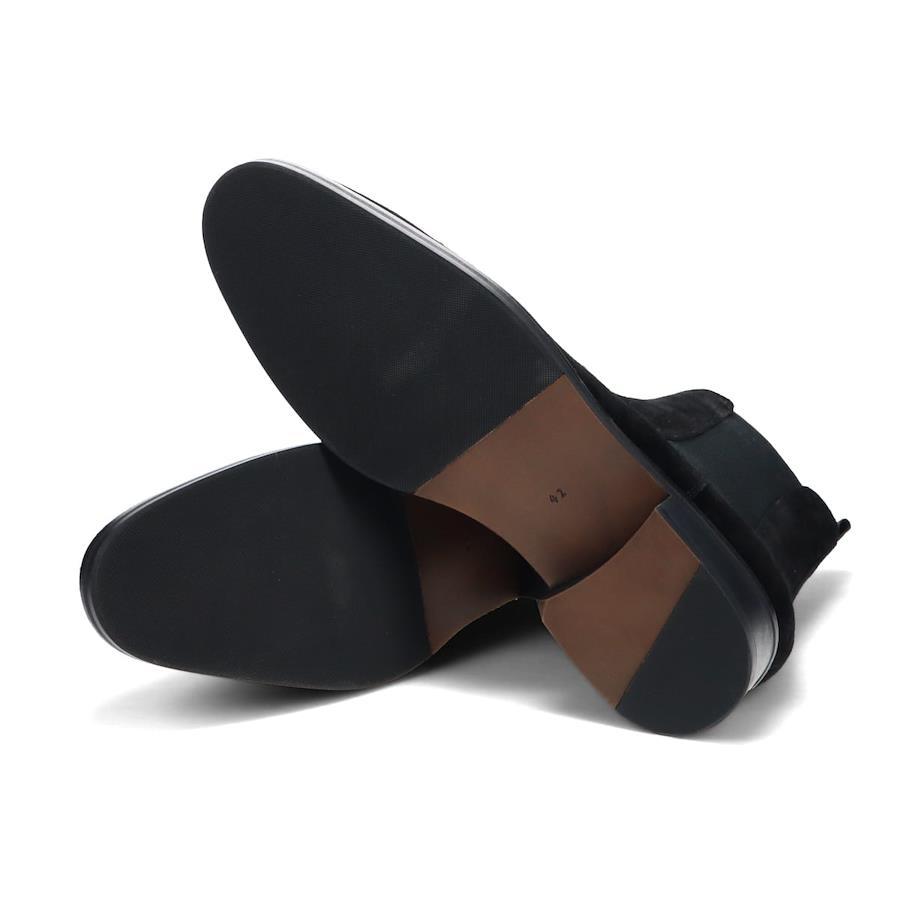 | カジュアル&エレガントなサイドゴアブーツ 【素材】 ナチュラルなクラストレザーからクリーム、スプレー加工で仕上げをしています。(ブラック) 毛先の整ったスエードをスプレーで陰影加工しています。(ブラックスエード、キャメルスエード) ※本革を使用している為、多少のムラや小傷などがございます。 【デザイン】 ヨーロッパの雰囲気を感じさせるスマートなフォルムで仕上げたサイドゴアブーツ シャフトもトレンド感のある程よくタイトな設計にしています。 スエードの上品でカジュアルな素材感は、キレイ目なカジュアルスタイルに相性◎ また、クッションのきいたカップインソールを採用し、履き心地もよいです。 "足首まで見せてもかっこいい"をコンセプトに、クロップドパンツなど丈の短いパンツやテーパードシルエットのワークパンツやトラウザーズにジャケットを合わせて、こなれた大人のカジュアルスタイルにおすすめです。 【サイズ】 ※普段通常の革靴で25.5cm、スニーカーで26.5-27cmを着用するスタッフで<41/25.5cm>でジャストサイズでした。 ややタイトフィットなので、ゆったり履きたい方はハーフサイズアップをおすすめします。 ※サイズ感は、個人差がございますのであくまで参考程度にお考えください。 ■ブランド...whoop'-de-doo' costume no age ■カラー...BLACK,BLACK SUEDE,CAMEL SUEDE ■アッパー素材....牛革 ■底材.....合成ラバー ■丈......約14.5cm ■ヒール...約3.8cm ■重さ(片足)...約488g ■中国製 *上記は全て25.5cmで計測した数値です。 *多少の誤差が生じる場合がございますので予めご了承下さい。 whoop de doo co.,ltd whoop'-de-doo' フープディドゥ |