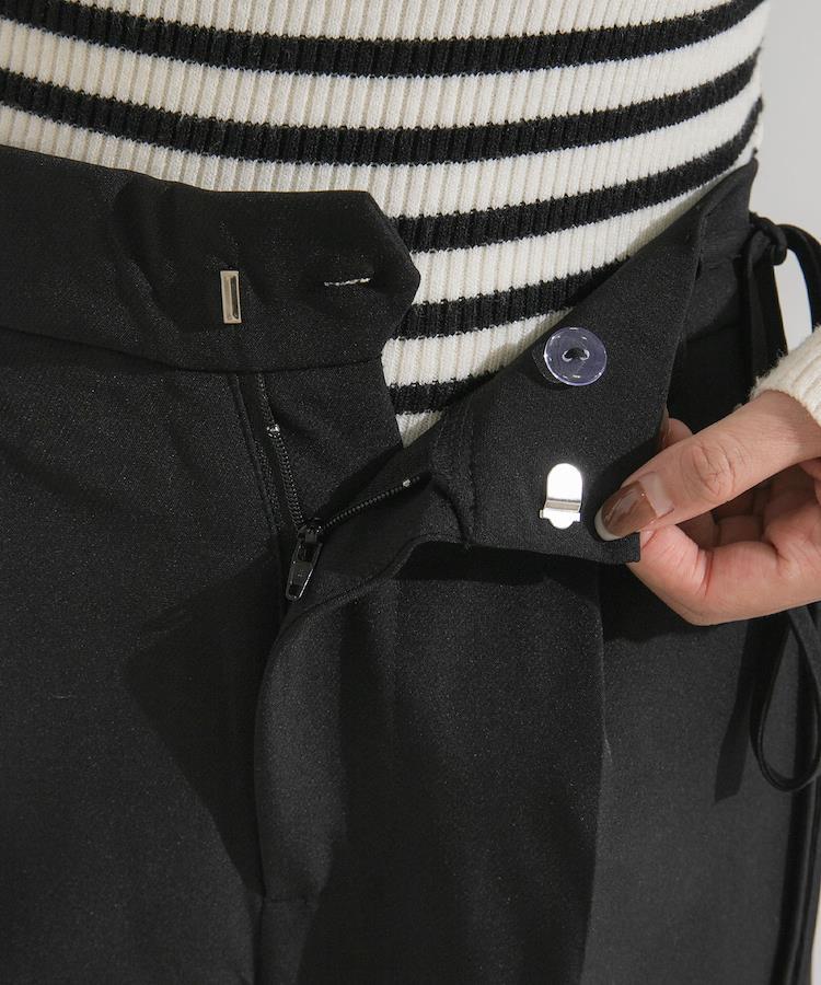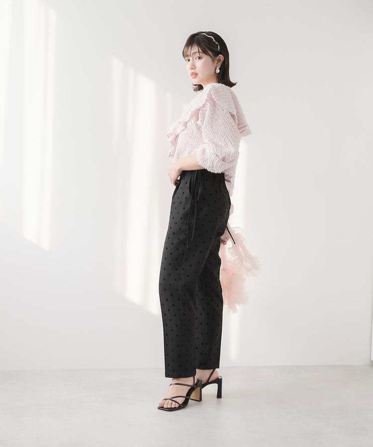 上品さと可愛らしさを兼ね備えたサイドリボンテーパードパンツ。